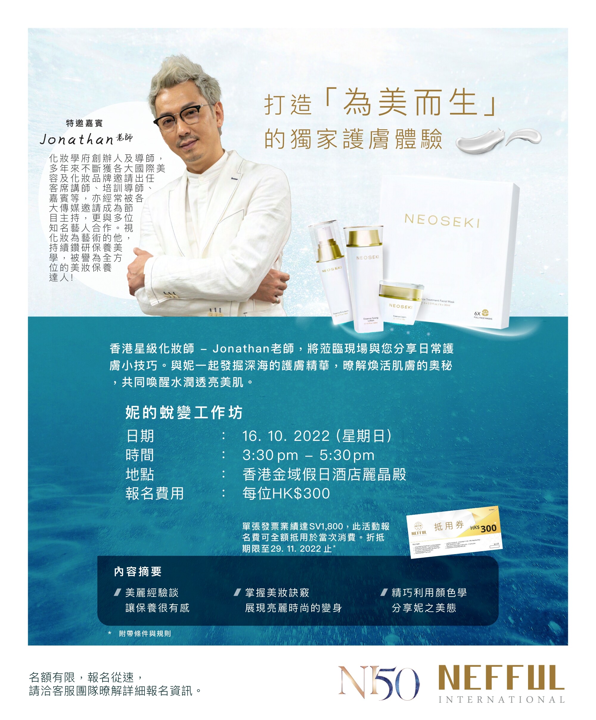 妮之淬全新系列護膚品 新品發佈會2022年9月30日妮之淬全新系列護膚品,賦予肌膚緊實澎潤與亮澤,煥發能量與生命力。 香港星級化妝師 – Jonathan老師,將蒞臨現場與您分享日常護膚小技巧; 與妮一起發掘深海的護膚精華,暸解煥活肌膚的奧秘,共同喚醒水潤透亮美肌。 請洽客服團隊暸解詳細報名資訊。 https://www.nefful.com.hk/wp-content/uploads/2023/08/LogoText_.png 0 0 Administrator https://www.nefful.com.hk/wp-content/uploads/2023/08/LogoText_.png Administrator2022-09-30 12:30:462022-09-30 12:26:39妮之淬全新系列護膚品 新品發佈會