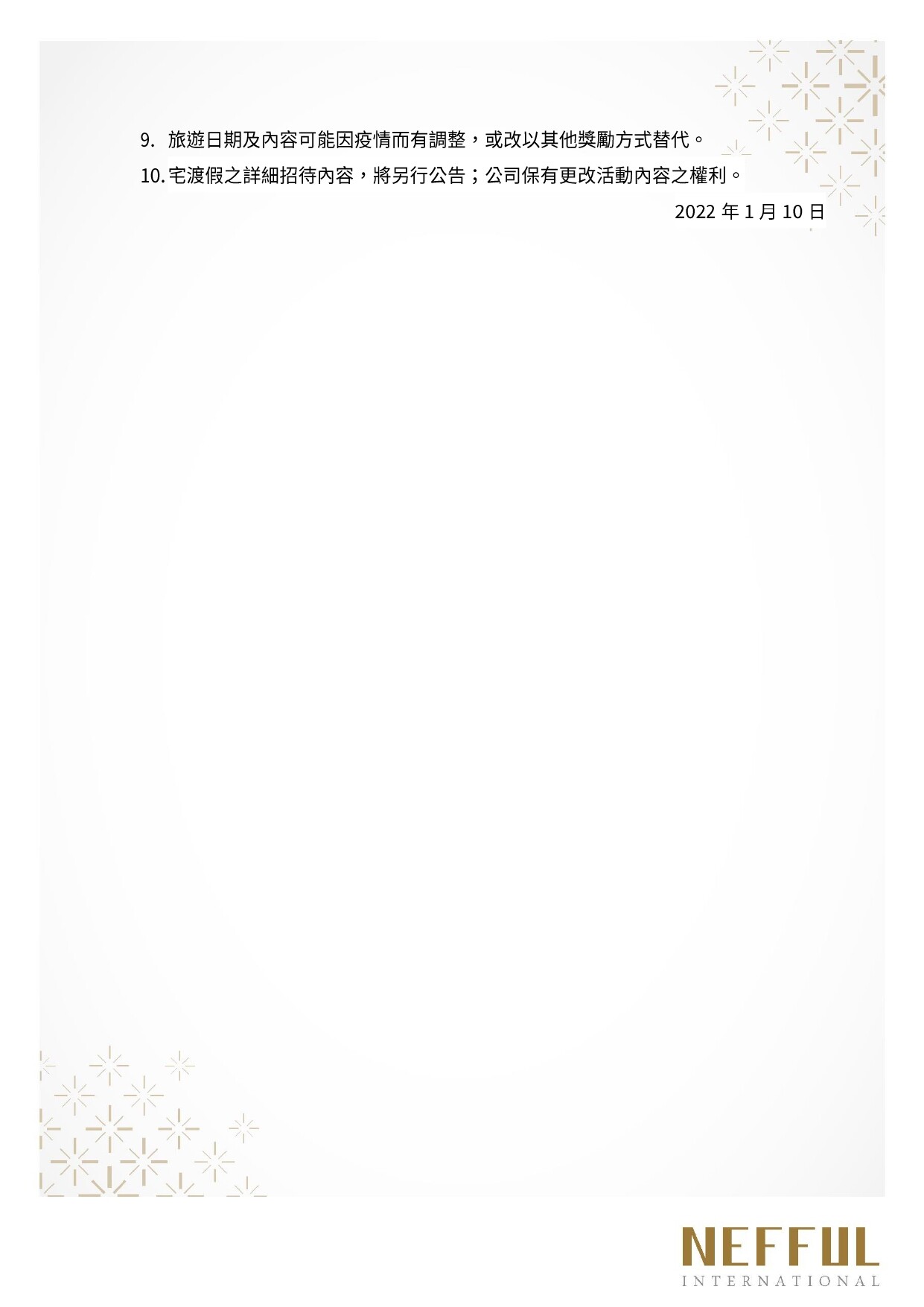 2022業績挑戰賽 與妮一起「宅渡假」2022年1月10日詳情請查看 https://www.nefful.com.hk/wp-content/uploads/2022/01/2022宅渡假舉辦公告_20211223_CH_HK_updated.pdf https://www.nefful.com.hk/wp-content/uploads/2023/08/LogoText_.png 0 0 Administrator https://www.nefful.com.hk/wp-content/uploads/2023/08/LogoText_.png Administrator2022-01-10 17:00:142022-01-07 18:35:062022業績挑戰賽 與妮一起「宅渡假」