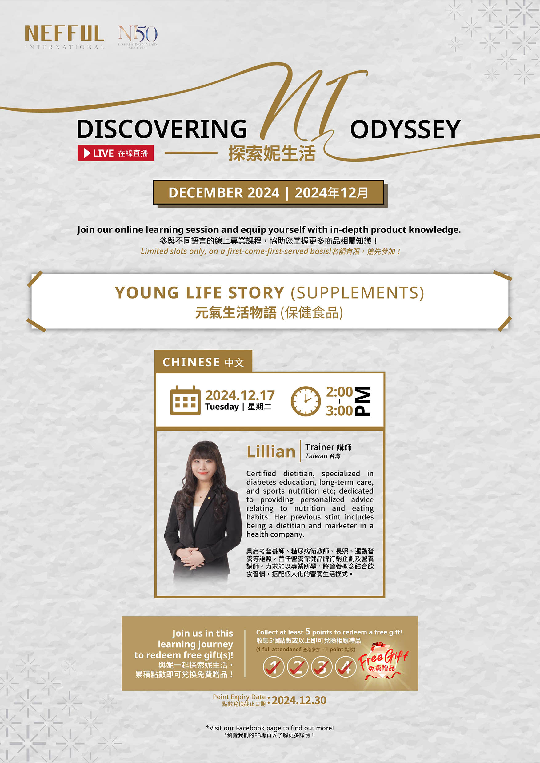 運用便利的網路科技,我們可以藉由網路學習商品相關的知識。我們誠摯地邀請您參加2024年線上探索妮生活課程。