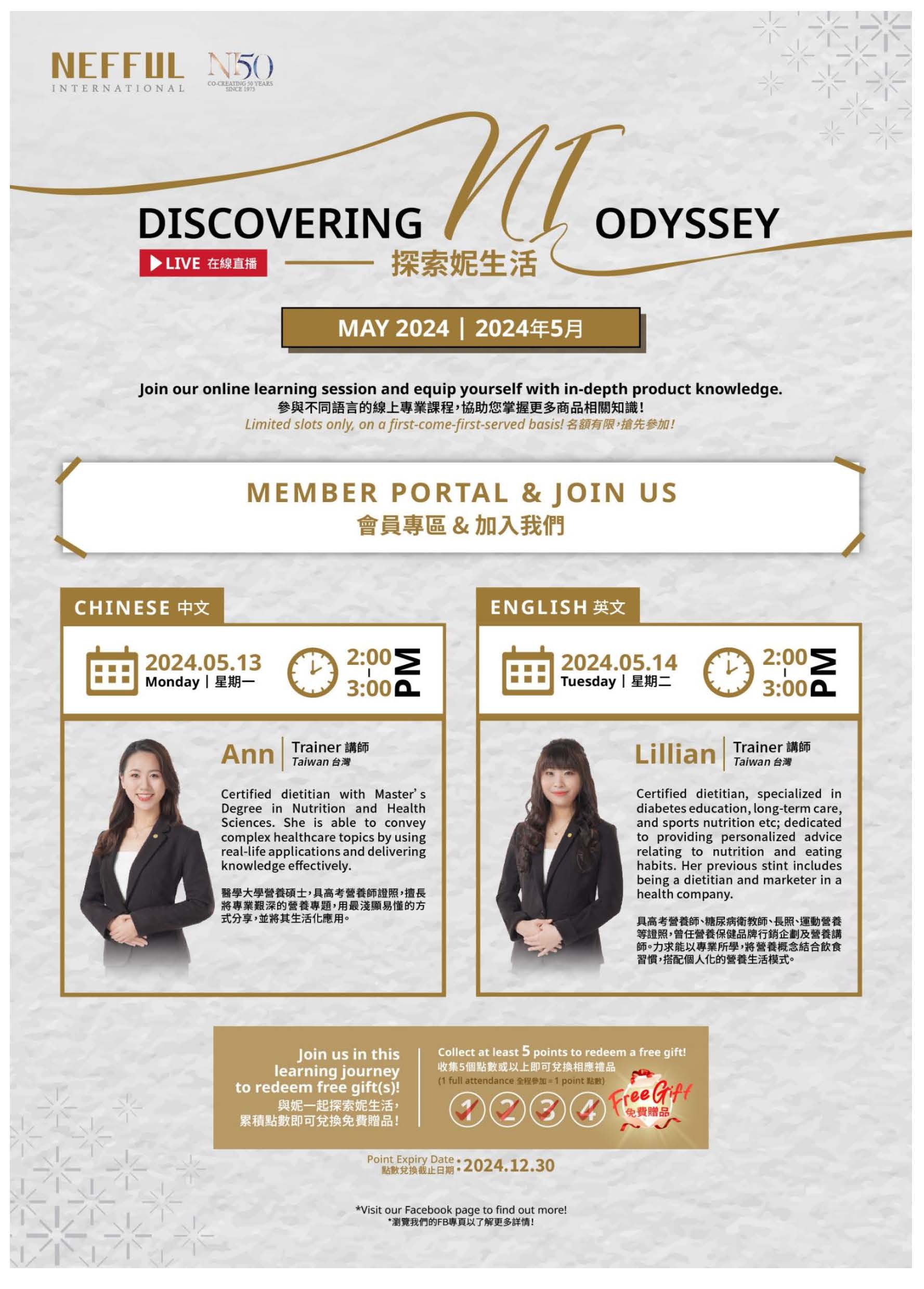運用便利的網路科技,我們可以藉由網路學習商品相關的知識。我們誠摯地邀請您參加2024年線上探索妮生活課程。
