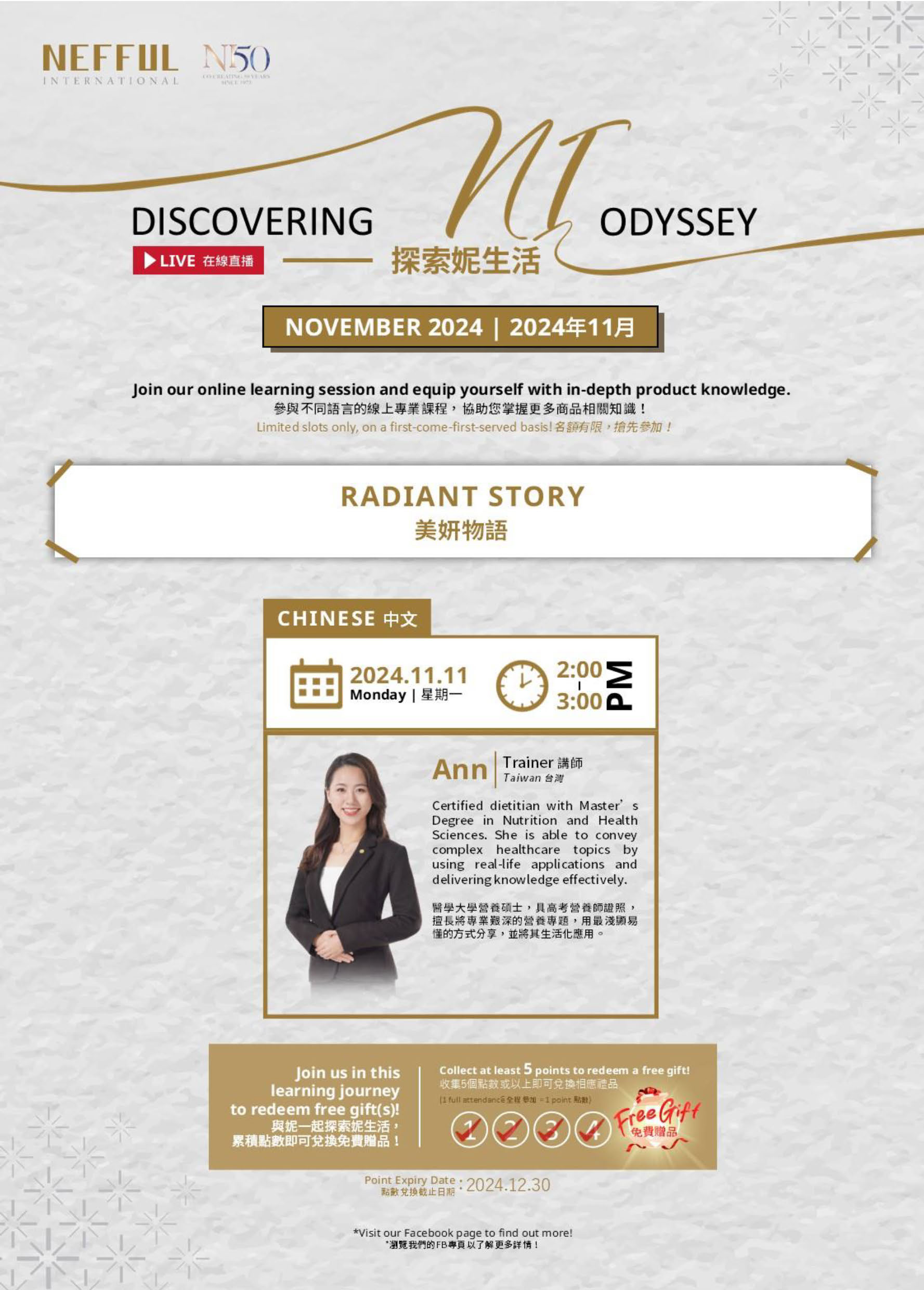 運用便利的網路科技,我們可以藉由網路學習商品相關的知識。我們誠摯地邀請您參加2024年線上探索妮生活課程。