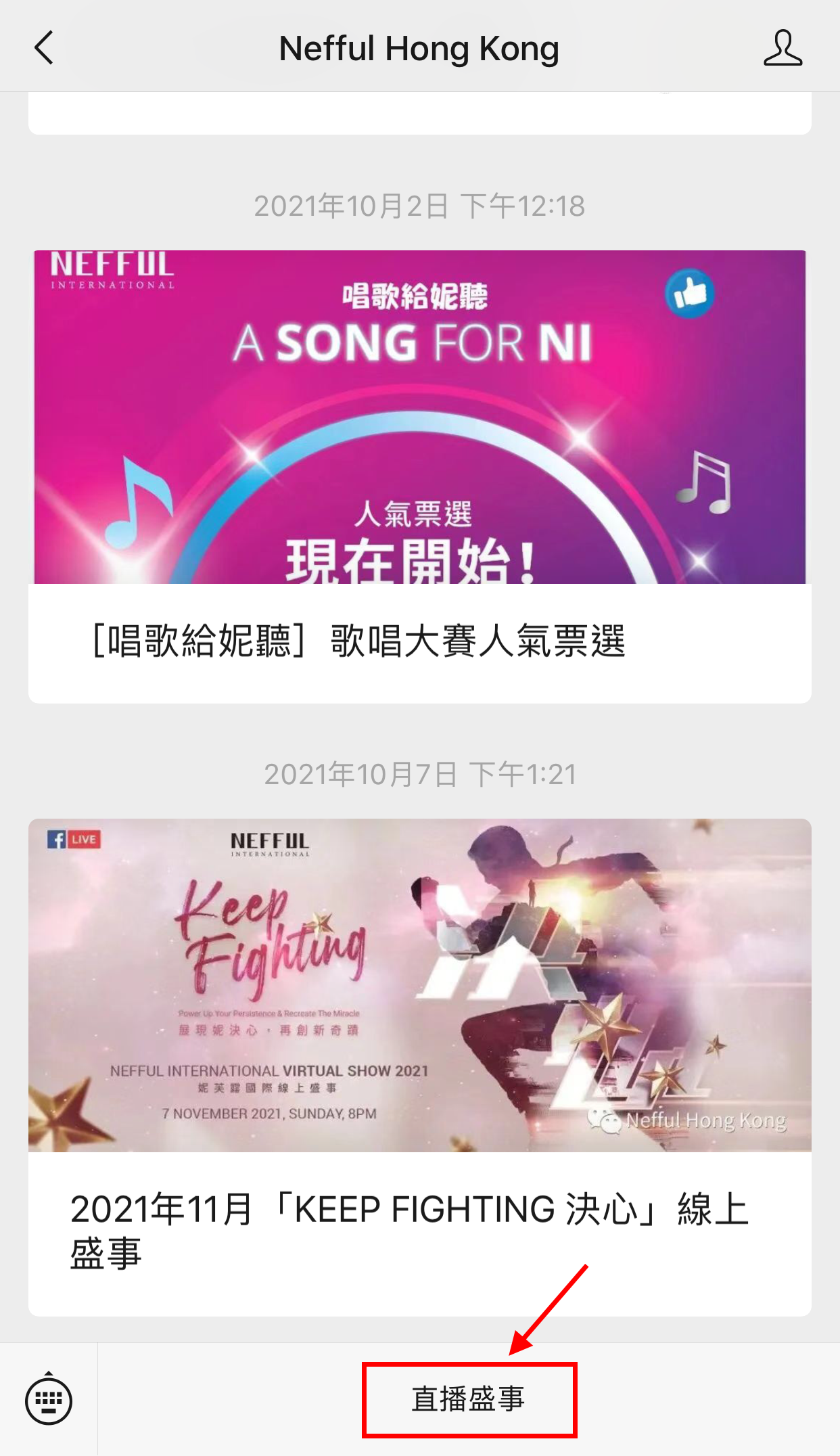 關注妮芙露香港微信公眾號 (NeffulHK 或掃描底部二維碼) 及全程收看節目, 約定您線上見喔!